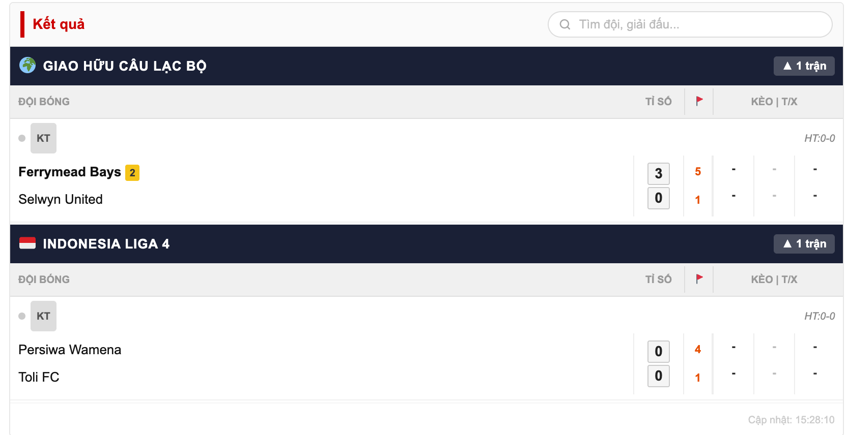 Cập nhật kết quả bóng đá theo thời gian thực